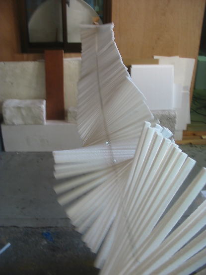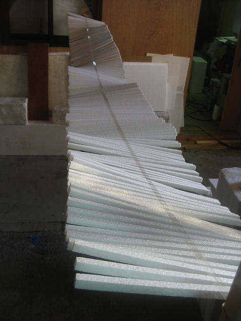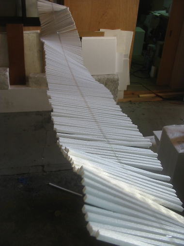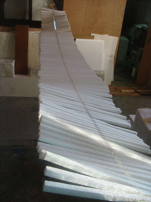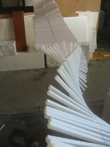 ようやく両端まで発泡スチロールのステックを貼り終わり、汗を拭きながら