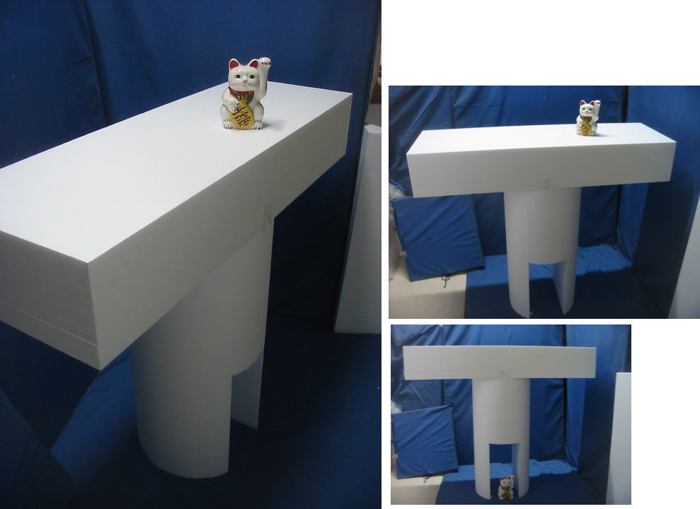 していますので 全体の安定感もプラスポイントでしょうか。T字台の下の空間には小さな円柱と三角の板並びは 起承転結でいう転のような変化をもたらせ