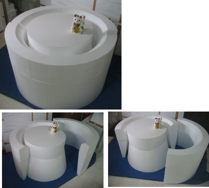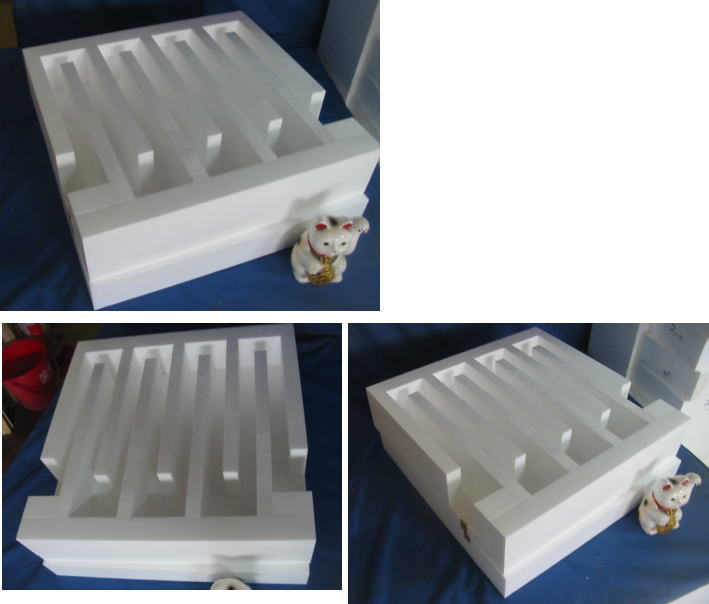隙間にコンクリートを流し込み、固まれば枠を外しますと 特殊な形状が完成します 何度も使います